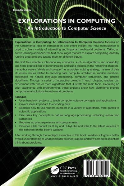 This text offers insight into how computation is used to solve a variety of interesting and important real-world problems. Taking an active learning approach that uses hands-on projects to teach computer science concepts and applications, the text encourages students to explore computing ideas by running programs and testing them on different inputs. It requires no prior experience with programming and includes a set of exercises at the end of each chapter, with selected solutions in an appendix. A lab manual for Ruby and RubyLabs and links to the latest versions of the software are available on the book's website.