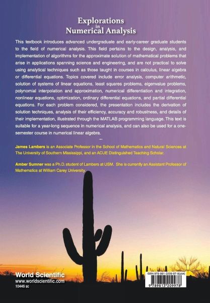 This textbook introduces advanced undergraduate and early-career graduate students to the field of numerical analysis. This field pertains to the design, analysis, and implementation of algorithms for the approximate solution of mathematical problems that arise in applications spanning science and engineering, and are not practical to solve using analytical techniques such as those taught in courses in calculus, linear algebra or differential equations. Topics covered include error analysis, computer arithmetic, solution of systems of linear equations, least squares problems, eigenvalue…mehr