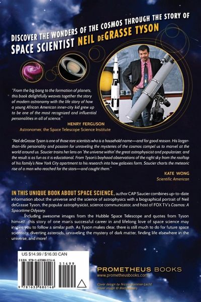Catch the thrill of the cosmos and space science through the life of Neil deGrasse Tyson. The author interweaves up-to-date information about the universe and the science of astrophysics with a biographical portrait of the famous astrophysicist. Quotes from Tyson appear throughout each chapter, personalizing the science. Illustrated with striking images from the Hubble Space Telescope, the story of one man's successful life in space science may inspire kids to follow a similar path. As Tyson makes clear, there is still much to do for future space scientists: diverting asteroids, unraveling the mystery of dark matter, finding life elsewhere in the universe, and more!