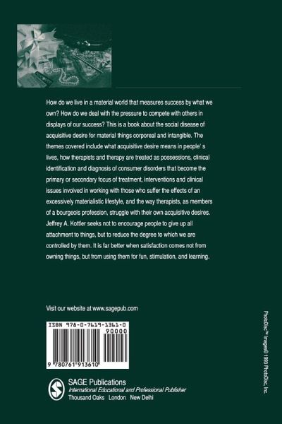 This book demonstrates how what we own can control us - the terminal stage of the social disease of acquisitive desire for material things. Topics covered include: what acquisitive desire means in people's lives; diagnosis and treatment of consumer disorders; interventions and clinical issues for those who follow an excessively materialistic lifestyle; how therapists and therapy are treated as possessions to flaunt; and the struggles of therapists with their own acquisitive desires. Jeffrey Kottler does not recommend giving up all attachment to things, but makes clear that satisfaction comes not from owning possessions, but from their legitimate use for amusement, stimulation or learning.