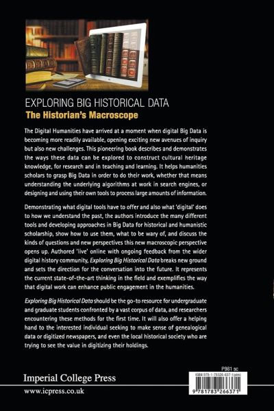 The Digital Humanities have arrived at a moment when digital Big Data is becoming more readily available, opening exciting new avenues of inquiry but also new challenges. This pioneering book describes and demonstrates the ways these data can be explored to construct cultural heritage knowledge, for research and in teaching and learning. It helps humanities scholars to grasp Big Data in order to do their work, whether that means understanding the underlying algorithms at work in search engines, or designing and using their own tools to process large amounts of information. Demonstrating what digital tools have to offer and also what 'digital' does to how we understand the past, the authors introduce the many different tools and developing approaches in Big Data for historical and humanistic scholarship, show how to use them, what to be wary of, and discuss the kinds of questions and new perspectives this new macroscopic perspective opens up. Authored 'live' online with ongoing feedback from the wider digital history community, Exploring Big Historical Data breaks new ground and sets the direction for the conversation into the future. It represents the current state-of-the-art thinking in the field and exemplifies the way that digital work can enhance public engagement in the humanities. Exploring Big Historical Data should be the go-to resource for undergraduate and graduate students confronted by a vast corpus of data, and researchers encountering these methods for the first time. It will also offer a helping hand to the interested individual seeking to make sense of genealogical data or digitized newspapers, and even the local historical society who are trying to see the value in digitizing their holdings.