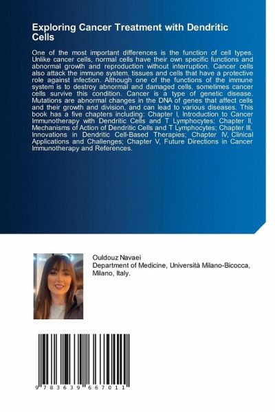 One of the most important differences is the function of cell types. Unlike cancer cells, normal cells have their own specific functions and abnormal growth and reproduction without interruption. Cancer cells also attack the immune system, tissues and cells that have a protective role against infection. Although one of the functions of the immune system is to destroy abnormal and damaged cells, sometimes cancer cells survive this condition. Cancer is a type of genetic disease. Mutations are abnormal changes in the DNA of genes that affect cells and their growth and division, and can lead to various diseases. This book has a five chapters including: Chapter I, Introduction to Cancer Immunotherapy with Dendritic Cells and T Lymphocytes; Chapter II, Mechanisms of Action of Dendritic Cells and T Lymphocytes; Chapter III, Innovations in Dendritic Cell-Based Therapies; Chapter IV, Clinical Applications and Challenges; Chapter V, Future Directions in Cancer Immunotherapy and References.