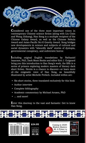 Considered one of the three most important voices in contemporary Chinese science fiction (along with Liu Cixin and Wang Jinkang), Han Song is a multiple recipient of the Chinese Galaxy Award (China's highest profile sci-fi prize), as well as the Chinese Nebula Award and Asian-Pacific Sci-fi Gravity Award. Song bridges new developments in science and subjects of cultural and social dynamics with stories of dystopia, governmental conspiracy, and subversive horror, earning praise for his work as "absurdly dark," while also reigniting a science fiction renaissance. Including original English translations by Nathaniel Isaacson, PhD, Dark Moon Books and editor Eric J. Guignard bring you this introduction to Han Song's work, the fifth in a series of primers exploring modern masters of literary dark short fiction. Herein is a chance to discover-or learn more of-the enigmatic voice of Han Song, as beautifully illustrated by artist Michelle Prebich. Included within these pages are: ¿ Six short stories, three translated exclusively for this book ¿ Author interview ¿ Complete bibliography ¿ Academic commentary by Michael Arnzen, PhD (former humanities chair and professor of the year, Seton Hill University) ¿ ... and more! Enter this doorway to the vast and fantastic: Get to know Han Song. ### "A fascinating study for fans seeking new reads and for librarians developing wide-ranging collections." -Library Journal "Refreshing and much-needed... Addresses significant themes and figures within the horror field." -Locus Magazine