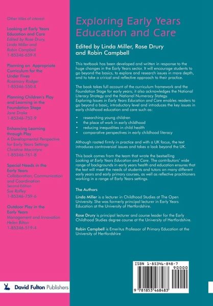 This textbook has been developed and written in response to the huge changes in the Early Years sector. It will encourage students to go beyond the basics, to explore and research issues in more depth, and to take a critical and reflective approach to their practice. The book takes full account of the curriculum framework and the Foundation Stage for early years; it also acknowledges the National Literacy Strategy and the National Numeracy Strategy. Exploring Issues in Early Years Education and Care enables readers to go beyond a basic, introductory level and introduces the key issues in early childhood education and care such as researching young children; the place of work in early childhood; reducing inequalities in child health; and comparative perspectives in early childhood literacy. Although rooted firmly in practice and with a UK focus, the text introduces controversial issues and takes a look beyond the UK. This book comes from the team that wrote the best-selling Looking at Early Years Education and Care. The contributors' wide range of backgrounds in early years health and education ensures that the text will meet the needs of students and tutors on many different early years and early primary courses, as well as reflective practitioners working in a range of Early Years settings.
