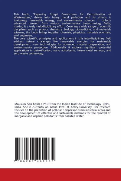This book, "Exploring Fungal Consortium for Detoxification of Wastewaters," delves into heavy metal pollution and its effects in toxicology, renewable energy, and environmental sciences. It collects advanced research from various environmental biotechnology fields, making it a truly multidisciplinary effort. Covering a wide range of scientific disciplines such as physics, chemistry, biology, biomedicine, and materials sciences, this book brings together chemists, physicists, materials scientists, and engineers.The core scientific principles and applications in this interdisciplinary field address future challenges like renewable energies for sustainable development, new technologies for advanced material preparation, and environmental protection. Additionally, it explores significant potential applications in detoxification, nano adsorbents, heavy metal removal, and zero waste technology.