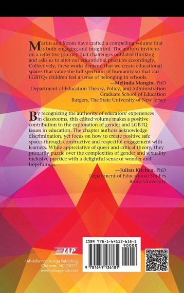 Past research on gender and LGBTQ issues in K-12 and teacher education has primarily focused on identifying ways of fostering inclusive and affirmative school communities for non-cis and/or queer students and enabling learning contexts to promote academic learning. Much of this work has attended to theorizing pedagogies and curricula conducive towards such an aim. Yet, despite legal advances for gender equity and LGBTQ rights in diverse global contexts and the increased visibility of LGBTQ issues in mainstream media, non-cis and queer individuals (especially those of color) continue to experience violence, face housing discrimination, employment discrimination, and the denial of service in public businesses. In light of the numerous growing conservative movements to not only roll back legal advances for LGBTQ individuals, but to also promote a culture of homophobia and transphobia, scholars must attend to the myriad ways in which members of the school community can counter such efforts, and how the multiple facets of the educative experience can be conceptualized beyond a paradigm that continues to marginalize gender diverse and LGBTQ individuals. This volume, Exploring Gender and LGBTQ Issues in K12 and Teacher Education: A Rainbow Assemblage, edited by Adrian D. Martin and Kathryn J. Strom, provides examples of empirical inquiries and theorizations that explore how schools can function as more than safe academic environments for gender diverse and LGBTQ students. The contributing authors attend to classrooms and educative contexts as spaces that promote the affirmative inclusion of not only LGBTQ students, but other education stakeholders as well with the aim to dismantle homophobia, transphobia, misogyny, and other hate-based ideologies. The volume serves as an insightful and useful resource for educators, teacher educators, and education researchers engaged in inquiry and pedagogy towards systems of schooling unencumbered by heteronormativity other hate-based ideologies with implications for future professional practice.
