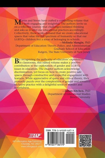 Past research on gender and LGBTQ issues in K-12 and teacher education has primarily focused on identifying ways of fostering inclusive and affirmative school communities for non-cis and/or queer students and enabling learning contexts to promote academic learning. Much of this work has attended to theorizing pedagogies and curricula conducive towards such an aim. Yet, despite legal advances for gender equity and LGBTQ rights in diverse global contexts and the increased visibility of LGBTQ issues in mainstream media, non-cis and queer individuals (especially those of color) continue to experience violence, face housing discrimination, employment discrimination, and the denial of service in public businesses. In light of the numerous growing conservative movements to not only roll back legal advances for LGBTQ individuals, but to also promote a culture of homophobia and transphobia, scholars must attend to the myriad ways in which members of the school community can counter such efforts, and how the multiple facets of the educative experience can be conceptualized beyond a paradigm that continues to marginalize gender diverse and LGBTQ individuals. This volume, Exploring Gender and LGBTQ Issues in K12 and Teacher Education: A Rainbow Assemblage, edited by Adrian D. Martin and Kathryn J. Strom, provides examples of empirical inquiries and theorizations that explore how schools can function as more than safe academic environments for gender diverse and LGBTQ students. The contributing authors attend to classrooms and educative contexts as spaces that promote the affirmative inclusion of not only LGBTQ students, but other education stakeholders as well with the aim to dismantle homophobia, transphobia, misogyny, and other hate-based ideologies. The volume serves as an insightful and useful resource for educators, teacher educators, and education researchers engaged in inquiry and pedagogy towards systems of schooling unencumbered by heteronormativity other hate-based ideologies with implications for future professional practice.