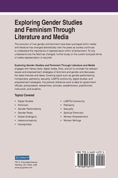 The evolution of how gender and feminism have been portrayed within media and literature has changed dramatically over the years as society continues to understand the importance of representation within entertainment. To fully understand how the field has changed, further study on the current and past forms of media representation is required. Exploring Gender Studies and Feminism through Literature and Media engages with literary texts, digital media, films, and art to consider the relevant issues and empowerment strategies of feminism and gender and discusses the latest theories and ideas. Covering topics such as gender performativity, homophobia, patriarchy, sexuality, LGBTQ community, digital studies, and empowerment strategies, this major reference work is ideal for government officials, policymakers, researchers, scholars, academicians, practitioners, instructors, and students.