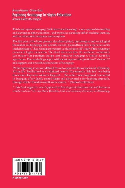 The first part of the book presents the philosophical, psychological and sociological foundations of heutagogy, and describes lessons learned from prior experiences of its implementation. The second part presents a collaborative self-study of five heutagogy courses in higher education. The third discusses how the academic community can enhance the paradigm change, and compares heutagogy to similar academic approaches. The concluding chapter of the book explores the question of "what next"? and suggests some possible elaborations of heutagogy.