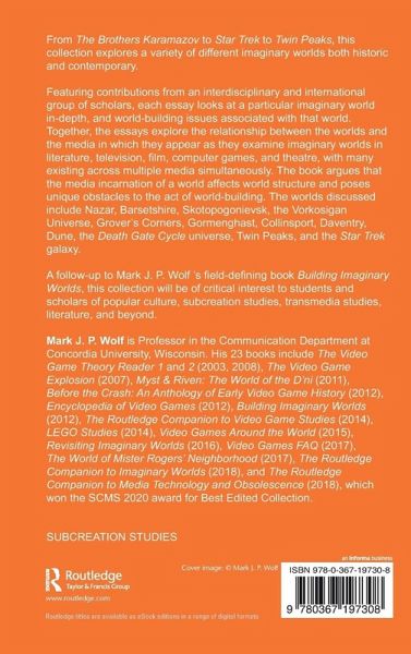 From The Brothers Karamazov to Star Trek to Twin Peaks, this collection explores a variety of different imaginary worlds both historic and contemporary. Featuring contributions from an interdisciplinary and international group of scholars, each essay looks at a particular imaginary world in-depth, and world-building issues associated with that world. Together, the essays explore the relationship between the worlds and the media in which they appear as they examine imaginary worlds in literature, television, film, computer games, and theatre, with many existing across multiple media simultaneously. The book argues that the media incarnation of a world affects world structure and poses unique obstacles to the act of world-building. The worlds discussed include Nazar, Barsetshire, Skotopogonievsk, the Vorkosigan Universe, Grover's Corners, Gormenghast, Collinsport, Daventry, Dune, the Death Gate Cycle universe, Twin Peaks, and the Star Trek galaxy. A follow-up to Mark J. P. Wolf 's field-defining book Building Imaginary Worlds, this collection will be of critical interest to students and scholars of popular culture, subcreation studies, transmedia studies, literature, and beyond.