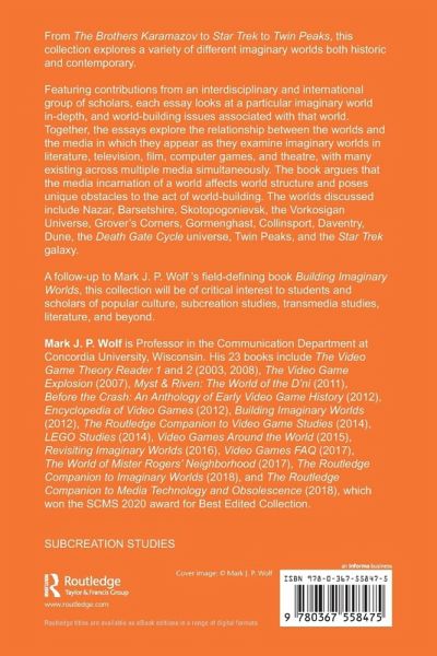 From The Brothers Karamazov to Star Trek to Twin Peaks, this collection explores a variety of different imaginary worlds both historic and contemporary. Featuring contributions from an interdisciplinary and international group of scholars, each essay looks at a particular imaginary world in-depth, and world-building issues associated with that world. Together, the essays explore the relationship between the worlds and the media in which they appear as they examine imaginary worlds in literature, television, film, computer games, and theatre, with many existing across multiple media simultaneously. The book argues that the media incarnation of a world affects world structure and poses unique obstacles to the act of world-building. The worlds discussed include Nazar, Barsetshire, Skotopogonievsk, the Vorkosigan Universe, Grover's Corners, Gormenghast, Collinsport, Daventry, Dune, the Death Gate Cycle universe, Twin Peaks, and the Star Trek galaxy. A follow-up to Mark J. P. Wolf 's field-defining book Building Imaginary Worlds, this collection will be of critical interest to students and scholars of popular culture, subcreation studies, transmedia studies, literature, and beyond.