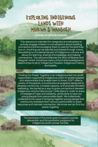 This resource is intended for caregivers and educators to actively engage children in conversations about building connections and encouraging them to care for the land they live on. Anything can be learned and shared through a story. Storytelling is a fundamental part of Indigenous cultures and allows for learning, sharing of knowledge, and making connections. This resource features the Story of Mukwa and Waagosh which introduces topics of land acknowledgments, relationships to land, Indigenous Peoples, Indigenous history, and Indigenous beliefs. The Story of Mukwa and Waagosh includes a children's story, a link to the interactive book reading, and recent research and resources for caregivers to continue their learning. The Truth and Reconciliation Commission of Canada's Call to Action encourages everyone to reflect on their ways of being an ally to Indigenous Peoples and challenges their reconciliation efforts. This resource aims to support caregivers to engage their children in critical conversations about Indigenous Peoples, reconciliation, and meaningful ways to care for the land around us