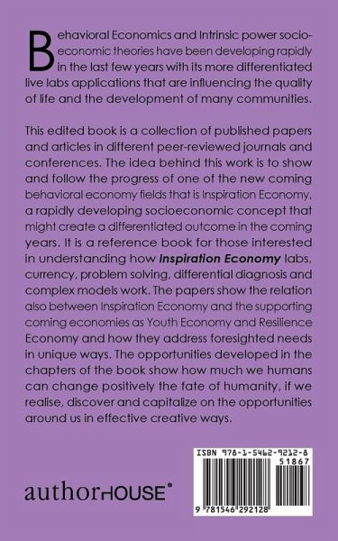 Behavioral Economics and Intrinsic power socio-economic theories have been developing rapidly in the last few years with its more differentiated live labs applications that are influencing the quality of life and the development of many communities. This edited book is a collection of published papers and articles in different peer-reviewed journals and conferences. The idea behind this work is to show and follow the progress of one of the new coming behavioral economy fields that is Inspiration Economy, a rapidly developing socioeconomic concept that might create a differentiated outcome in the coming years. It is a reference book for those interested in understanding how Inspiration Economy labs, currency, problem solving, differential diagnosis and complex models work. The papers show the relation also between Inspiration Economy and the supporting coming economies as Youth Economy and Resilience Economy and how they address foresighted needs in unique ways. The opportunities developed in the chapters of the book show how much we humans can change positively the fate of humanity, if we realise, discover and capitalize on the opportunities around us in effective creative ways.