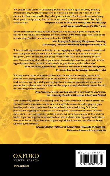 The book describes the theories and models of leadership that have developed over time, and provides an analytical and multidisciplinary framework for discussion of leaders and leadership from individual, organizational, and societal perspectives.