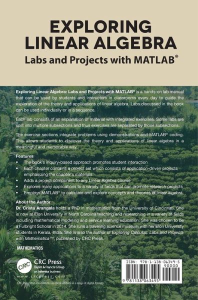 Exploring Linear Algebra: Labs and Projects with MATLAB® is a hands-on lab manual that can be used by students and instructors in classrooms every day to guide the exploration of the theory and applications of linear algebra. For the most part, labs discussed in the book can be used individually or in a sequence. Each lab consists of an explanation of material with integrated exercises. Some labs are split into multiple subsections and thus exercises are separated by those subsections.