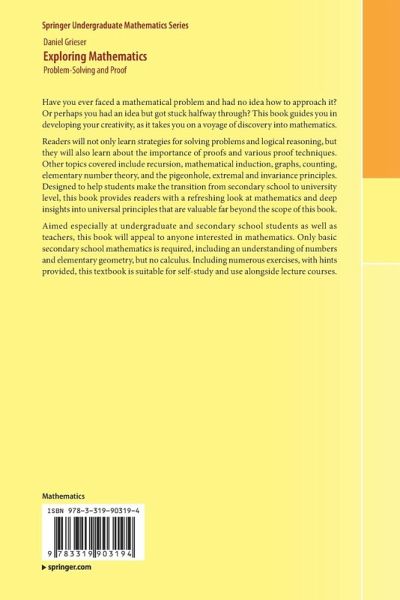 "Exploring Mathematics can be used as an introduction to mathematical problem-solving, but may be better used as a supplement. I personally found that this systematic review of mathematical topics was refreshing, helping to fill gaps in my problem-solving toolkit. The reader may find it beneficial to use the book to review the fundamentals and enrich their problem-solving knowledge." (Jack Chen, MAA Reviews, January, 2019)