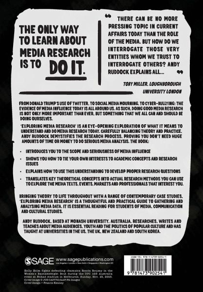 In Exploring Media Research, Andy Ruddock provides the theoretical, methodological, and ethical tools that enable scholars, students, and citizens to dissect the cultural power of media, and to apply this understanding to the creation of a more just society. Written in a direct and accessible style, this timely and provocative book firmly establishes Ruddock as one of the premier media scholars of his generation.