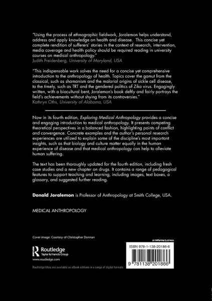 "This indispensable work solves the need for a concise yet comprehensive introduction to the anthropology of health. It can serve as the primary text for a beginning level course or, as I employ it, a template to jump start an advanced course on culture, health and healing that integrates varied literature, ethnography, and media. Topics cover the gamut from the classical, such as shamanism and the malarial origins of sickle cell, to the timely, such as TRT and the gendered politics of Zika. Engagingly written, with a biocultural bent, Joralemon's book deftly and fairly portrays the field's achievements without shying from its controversies."