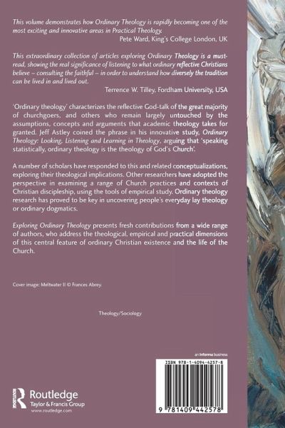 'Ordinary theology' characterizes the reflective God-talk of the great majority of churchgoers, and others who remain largely untouched by the assumptions, concepts and arguments that academic theology takes for granted. Jeff Astley coined the phrase in his innovative study, Ordinary Theology: Looking, Listening and Learning in Theology, arguing that 'speaking statistically ordinary theology is the theology of God's Church'. A number of scholars have responded to this and related conceptualizations, exploring their theological implications. Other researchers have adopted the perspective in examining a range of Church practices and contexts of Christian discipleship, using the tools of empirical study. Ordinary theology research has proved to be key in uncovering people's everyday lay theology or ordinary dogmatics. Exploring Ordinary Theology presents fresh contributions from a wide range of authors, who address the theological, empirical and practical dimensions of this central feature of ordinary Christian existence and the life of the Church.