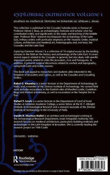 Exploring Outremer Volume I¿is a collection of 14 original essays by the leading scholars in the field on the history and archaeology of the Latin East.
