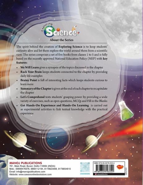 Exploring Science Volume 3"" by Manoj Publications is a comprehensive and engaging educational resource designed to foster a love for science among young learners. This book serves as a gateway to the fascinating world of scientific knowledge, covering a wide range of topics in a concise and accessible manner. The book follows a systematic and well-structured approach, presenting complex concepts in a simplified manner that is easy for students to grasp. It encompasses various branches of science, including physics, chemistry, biology, and environmental science, providing a well-rounded understanding of each subject. With its interactive and visually appealing layout, ""Exploring Science Volume 3"" keeps students motivated and encourages active learning. Including practical experiments and hands-on activities enhances the learning experience, enabling students to apply theoretical knowledge in real-life scenarios. Furthermore, the book incorporates engaging illustrations, diagrams, and examples, making it easier for students to visualize abstract concepts. It also includes review questions and exercises at the end of each chapter, allowing students to assess their understanding and reinforce their learning. In summary, ""Exploring Science Volume 3"" by Manoj Publications is a valuable educational tool that ignites curiosity, cultivates scientific thinking, and provides a solid foundation in various scientific disciplines.