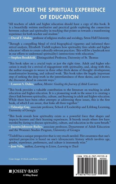 EXPLORE THE SPIRITUAL EXPERIENCE OF EDUCATION "All teachers of adult and higher education should have a copy of this book. It is a beautifully written meditative and practical guide exploring the connection between culture and spirituality in teaching that points us towards a transforming experience for both teacher and student." --David T. Abalos, professor of religious studies and sociology, Seton Hall University "Through a compelling blend of vivid biographical vignettes and informed theoretical analysis, Elizabeth Tisdell explores how spirituality fires adults and higher educators' efforts to create culturally relevant practices. This will be a landmark text in our efforts to understand spirituality's intersections with education." --Stephen Brookfield, Distinguished Professor, University of St. Thomas "This book takes on a crucial topic at just the right time. Adult and higher education is ready for a revival of engagement with spirituality, and, along with this, the author manages to weave in three other thick skeins of thought: development, transformative learning, and cultural work. This book takes the hugely important step of seeking the deep truth in the interrelatedness of these skeins, and it moves the discourse ahead in concrete ways." --Laurent A. Daloz, author, Mentor: Guiding the Journey of Adult Learners "This book provides a valuable contribution to the literature on teaching in adult education and higher education. It is a pioneering work in the sense it is creating a direct link between spirituality, culture, and learning in adult and higher education. While there have been other attempts at addressing these issues, this is the first book, of which I am aware, that links all three together." --Talmadge Guy, associate professor, School of Leadership and Lifelong Learning, University of Georgia "This book reveals how spirituality exists as a powerful force that shapes and impacts learners and their learning experiences. It bravely treads where few have traveled by daring to discuss spirituality, culture, and education in the same breath." --Juanita Johnson-Bailey, associate professor, Department of Adult Education and the Women's Studies Program, University of Georgia "Tisdell has a unique perspective that is very much needed. Her awareness that one's spiritual perspective is based on one's idiosyncratic history which involves age, gender, experience, preferences, and culture is immensely wise." --Jane Vella, author, Learning to Listen, Learning to Teach