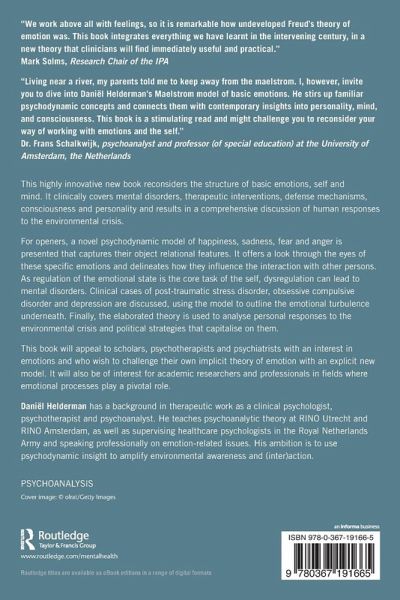 "Living near a river, my parents told me to keep away from the maelstrom. I, however, invite you to dive into Daniel Helderman's Maelstrom model of basic emotions. He stirs up familiar psychodynamic concepts and connects them with contemporary insights into personality, mind, and consciousness. This book is a stimulating read and might challenge you to reconsider your way of working with emotions and the self." - Prof. Frans Schalkwijk, psychoanalyst; author of The Conscience and Self-Conscious Emotions in Adolescence: An integrative approach