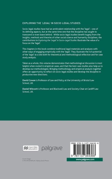 Socio-legal studies have had an ambivalent relationship with the 'legal' - one of its defining aspects, but at the same time one that the discipline has sought to transcend or even leave behind. While socio-legal studies benefit hugely from the insights, methods and theories of other social science and humanity disciplines, the contributions to Exploring the 'Legal' in Socio-Legal Studies illustrate the value of a focus on the 'legal'.