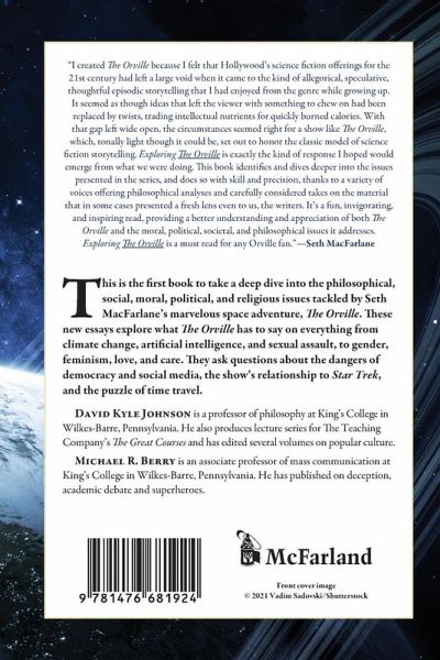 This is the first book to take a deep dive into the philosophical, social, moral, political, and religious issues tackled by Seth MacFarlane's marvelous space adventure, The Orville. These new essays explore what The Orville has to say on everything from climate change, artificial intelligence, and sexual assault, to gender, feminism, love, and care. Divided into six "acts" (just like every episode ofThe Orville), with the show as its backdrop, the book asks questions about the dangers of democracy and social media, the show's relationship to Star Trek and the puzzle of time travel.