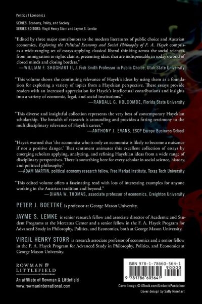 Peter J. Boettke is Professor at George Mason University. Jayme Lemke is a Senior Research Fellow and Associate Director of Academic and Student Programs at the Mercatus Center at George Mason University and a Senior Fellow in the F.A. Hayek Program for Advanced Study in Philosophy, Politics, and Economics. Virgil Storr is Research Associate Professor of Economics and Senior Fellow, F.A. Hayek Program for Advanced Study in Philosophy, Politics & Economics, George Mason University.