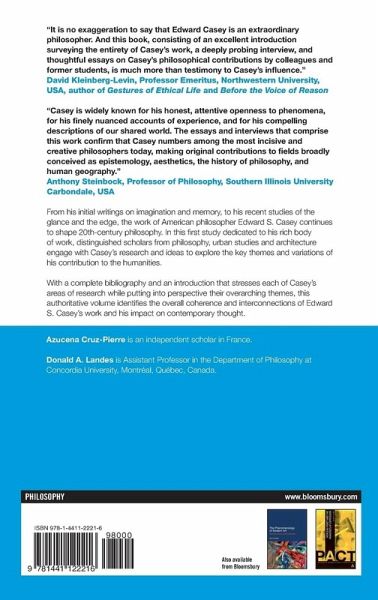 From his initial writings on imagination and memory, to his recent studies of the glance and the edge, the work of American philosopher Edward S. Casey continues to shape 20th-century philosophy. In this first study dedicated to his rich body of work, distinguished scholars from philosophy, urban studies and architecture as well as artists engage with Casey's research and ideas to explore the key themes and variations of his contribution to the humanities. Structured into three major parts, the volume reflects the central concerns of Casey's writings: an evolving phenomenology of imagination, memory, and place; representation and landscape painting and art; and edges, glances, and voice. Each part begins with an extended interview that defines and explains the topics, concepts, and stakes of each area of research. Readers are thus offered an introduction to Casey's fascinating body of work, and will gain a new insight into particular aspects and applications of Casey's research. With a complete bibliography and an introduction that at once stresses each of Casey's areas of research while putting into perspective their overarching themes, this authoritative volume identifies the overall coherence and interconnections of Edward S. Casey's work and his impact on contemporary thought.