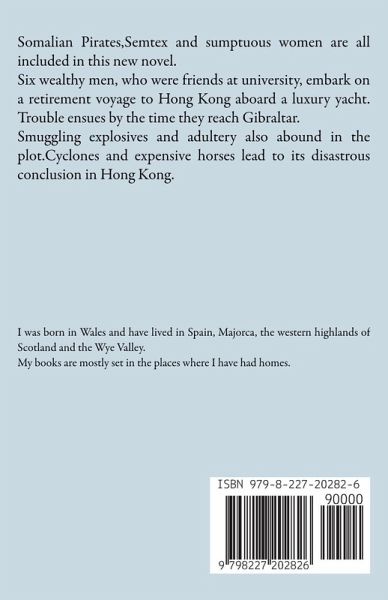Somalian Pirates,Semtex and sumptuous women are all included in this new novel. Six wealthy men, who were friends at university, embark on a retirement voyage to Hong Kong aboard a luxury yacht. Trouble ensues by the time they reach Gibraltar. Smuggling explosives and adultery also abound in the plot.Cyclones and expensive horses lead to its disastrous conclusion in Hong Kong.