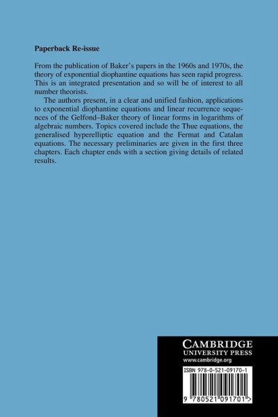 This is a integrated presentation of the theory of exponential diophantine equations.