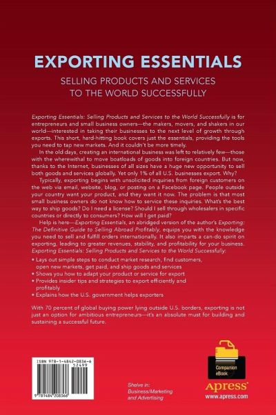 Help is here Exporting Essentials, an abridged version of the author's Exporting: The Definitive Guide to Selling Abroad Profitably, equips you with the knowledge you need to sell and fulfill orders internationally. It also imparts a can-do spirit on exporting, leading to greater revenues, stability, and profitability for your business. Exporting Essentials: Selling Products and Services to the World Successfully: