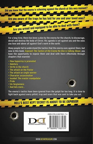 Did you know that the enemy is scheming against the church at this very moment? Are you aware of the traps he has laid for you and your loved ones? Are you armed and equipped to be able to deal with them? For a long time, there has been a plan by the enemy for the church, to discourage, derail and destroy the body of Christ. His agenda is set against you and the ones you love and above all against God’s work in the earth. Many people fail to understand the tactics that the enemy uses against them, but now in this book, Exposed: The Tactics of the Enemy No One is Talking About, you have the opportunity to expose them and deal with them effectively through chapters that examine: How hypocrisy is promoted Adultery Strife in the church The attack on the Pastor The attack on single women Character assassination Jezebel: The master manipulator Pride Un-forgiveness And lots more… The enemy’s tactics have been ignored from the pulpit for too long. It is time to fight back against every pitfall, trap and snare that was sent to take you out. Hell’s best kept secret is about to be Exposed!