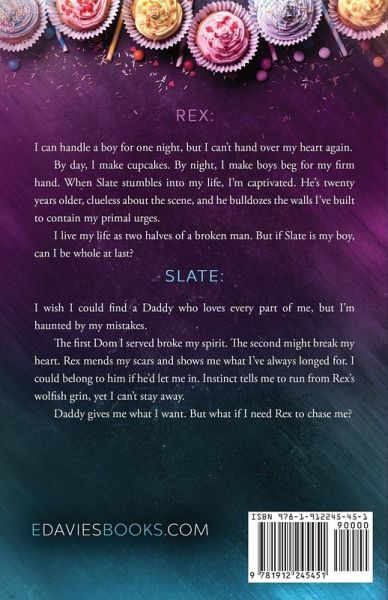 REX: I can handle a boy for one night, but I can't hand over my heart again. By day, I make cupcakes. By night, I make boys beg for my firm hand. When Slate stumbles into my life, I'm captivated. He's twenty years older, clueless about the scene, and he bulldozes the walls I've built to contain my primal urges. I live my life as two halves of a broken man. But if Slate is my boy, can I be whole at last? SLATE: I wish I could find a Daddy who loves every part of me, but I'm haunted by my mistakes. The first Dom I served broke my spirit. The second might break my heart. Rex mends my scars and…mehr