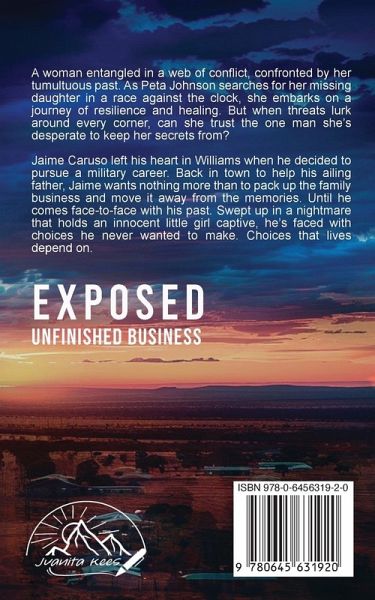 She never forgot the small town she came from, or the trouble she left behind... A woman entangled in a web of conflict, confronted by her tumultuous past. As Peta Johnson searches for her missing daughter in a race against the clock, she embarks on a journey of resilience and healing. But when threats lurk around every corner, can she trust the one man she's desperate to keep her secrets from? Jaime Caruso left his heart in Williams when he decided to pursue a military career. Back in town to help his ailing father, Jaime wants nothing more than to pack up the family business and move it away…mehr