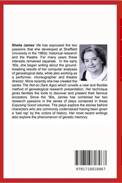 Sheila James' collected plays and articles ('Exposing Good', 1990-2020) examine the stories behind characters who are commonly undervalued having been given a 'bad rap' by the victors of history. They include Richard III, Machiavelli, and Frank Dickens (son of Charles). Her most recent writings also explore the phenomenon of genetic memory. The current volume ('Exposing Good', vol. 3) contains a Scholars' and Production version of 'Machiavelli'.