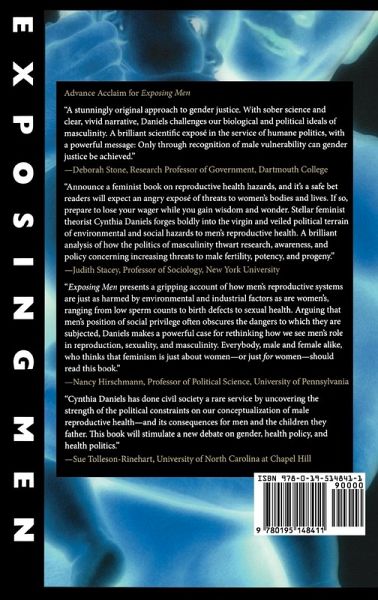 Exposing Men examines how ideals of masculinity have long skewed our societal--and scientific--understanding of one of the pillars of male identity: reproductive health. Only with the recent public exposure of men's reproductive troubles has the health of the male body been thrown into question, and along with it deeper masculine ideals. Whereas once men's sexual and reproductive abilities were the most taboo of topics, today erectile dysfunction is a multi-billion dollar business, and magazine articles trumpet male reproductive decline with headlines such as "You're Half the Man Your Father Was." Cynthia R. Daniels casts a gimlet eye on our world of plummeting sperm counts, spiking reproductive cancers, sperm banks, and pharmacological cures for impotence in order to assess the true state of male health. What she finds is male reproductive systems damaged by toxins and war, and proof piling up that men through sperm, pass on harm to the children they father. Yet, despite the evidence that men's health, as much as women's, significantly affects the vitality of their offspring, Daniels also sees a society holding on to outdated assumptions, one in which men ignore blatant health risks as they struggle to live up to antiquated ideas of manliness.