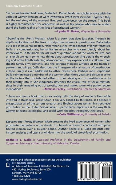 Exposing the Pretty Woman Myth is a book which does just that. Through in-depth explorations of the lives of 43 women in prostitution, Dalla helps us to see them as real people, rather than as the embodiments of johns' fantasies. Dalla is a compassionate, humanitarian researcher who cares deeply about her interviewees. In this book, she asks lots of questions about the women's lives, and as a result we learn some new things about prostitution. She details the wrenching and often life-threatening abandonment they experienced as children, their chaotic family environments, and the extreme violence suffered at the hands of partners and pimps. Dalla describes the intergenerational nature of prostitution, a topic rarely if ever addressed by other researchers. Perhaps most important, Dalla re-interviewed a number of the women after 3 years and discusses some of the factors that contributed either to their staying out of prostitution or to their re-entry into it. She eloquently describes the crucial role of social relationships in their remaining out of prostitution and makes some wise policy recommendations. -- Melissa Farley, Prostitution Research & Education In her well-researched book, Dalla blends her scholarly voice with the voices of women who are or were involved in street-level sex work. Together, they tell the real story of the women's lives and experiences on the streets. This book is highly recommended for academics as well as lay people who seek to understand the harsh reality of the lives of prostituted women. -- Lynda M. Baker, Wayne State University I have not seen a book that so accurately tells the story of women's lives while involved in street-level prostitution. I am very excited by this book as I believe it encapsulates all of the current research and findings about women in street-level prostitution in the U.S. What is particularly impressive is the way Dalla weaves relevant sociological and social work theories throughout the book. -- Celia Williamson, University of Toledo