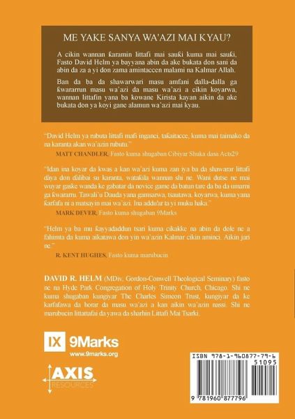What makes for good preaching? In this accessible Hausa-language volume-written for preachers and preachers in training-pastor David Helm outlines what must be believed and accomplished to become a faithful expositor of God's Word. In addition to offering practical, step-by-step guidance for preachers, this short book will equip all of us to recognize good preaching when we hear it.