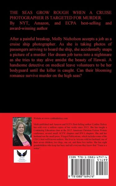 Nowhere to run. The seas grow rough when a cruise photographer is targeted for murder. By Amazon, and ECPA best-selling and award-winning author After a painful breakup, Molly Nicholson accepts a job as a cruise ship photographer. As she is taking photos of passengers arriving to board the ship, she accidentally snaps a picture of a murder. Her dream job turns into a nightmare as she tries to stay alive amidst the beauty of Hawaii. A handsome detective on medical leave volunteers to be her bodyguard until the killer is caught. Can their blooming romance survive murder on the high seas?