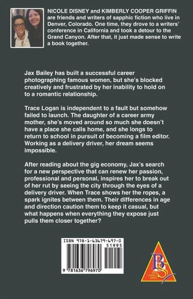Jax Bailey has built a successful career photographing famous women, but she's blocked creatively and frustrated by her inability to hold on to a romantic relationship. Trace Logan is independent to a fault but somehow failed to launch. The daughter of a career army mother, she's moved around so much she doesn't have a place she calls home, and she longs to return to school in pursuit of becoming a film editor. Working as a delivery driver, her dream seems impossible. After reading about the gig economy, Jax's search for a new perspective that can renew her passion, professional and personal, inspires her to break out of her rut by seeing the city through the eyes of a delivery driver. When Trace shows her the ropes, a spark ignites between them. Their differences in age and direction caution them to keep it casual, but what happens when everything they expose just pulls them closer together?
