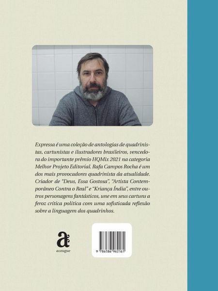 Expressa is a collection of anthologies of Brazilian comics, cartoonists, and illustrators, winner of the important HQMix 2021 award in the Best Editorial Project category. Rafa Campos Rocha is one of today's most provocative comic strip artists. Creator of "Deus, Essa Gostosa", "Artista Contemporâneo Contra o Real" and "Kriança Índia", among other fantastic characters, he unites in his cartoons a fierce political criticism with a sophisticated reflection on the language of comics.