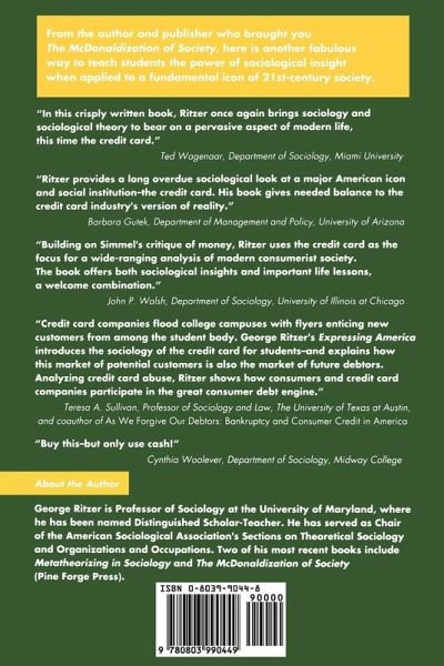 This innovative text focuses on an American icon, central to United States culture, that is rapidly becoming a global expression of prosperity - the credit card. George Ritzer explains what the credit card tells us, both good and bad, about the essence of the modern US and why and how the credit card is helping to transform much of the world. Drawing on the insights of both classic and contemporary social thinkers, including Georg Simmel, C Wright Mills, Karl Marx and Max Weber, as well as micro-macro, agency-structure and Americanization theories, Ritzer also reveals to students the powerful insights gained from using the sociological `imagination' applied to a topic that students know about and are interested in.