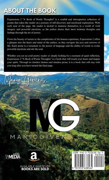 Expressions 2 "A Book of Poetic Thoughts" is a soulful and introspective collection of poems that takes the reader on a journey of self-discovery and emotional exploration. With each turn of the page, the reader is invited to immerse themselves in a world of vivid imagery and powerful emotions, as the author shares their most intimate thoughts and feelings through the art of poetry. From the beauty of nature to the complexities of the human experience, Expressions 2 offers a glimpse into the heart and mind of the author, as they navigate the joys and sorrows of life. Each poem is a testament to the power of language and the ability of words to evoke powerful emotions and stir the soul. Whether you are an avid poetry reader or simply looking for a moment of quiet reflection, Expressions 2 "A Book of Poetic Thoughts" is a book that will touch your heart and inspire your spirit. Through its timeless themes and timeless prose, it is a book that will stay with you long after you have turned the final page.
