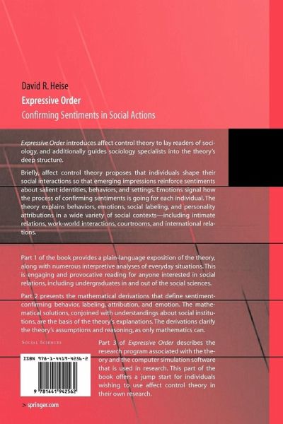 Expressive Order introduces affect control theory to lay readers of sociology, and additionally guides sociology specialists into the theory's deep structure.