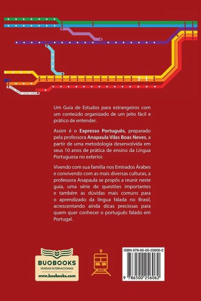 Um Guia de Estudos para estrangeiros com um conteúdo organizado de um jeito fácil e prático de entender. Assim é o Expresso Português, preparado pela professora Anapaula Vilas Boas Neves, a partir de uma metodologia desenvolvida em seus 10 anos de prática de ensino da Língua Portuguesa no exterior. Vivendo com sua família nos Emirados Árabes e convivendo com as mais diversas culturas, a professora Anapaula se propôs a reunir neste guia, uma série de questões importantes e também as dúvidas mais comuns para o aprendizado desta língua, acrescentando ainda dicas preciosas para quem quer conhecer o português falado em Portugal.