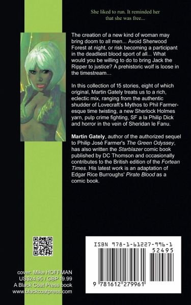 The creation of a new kind of woman may bring doom to all men... Avoid Sherwood Forest at night, or risk becoming a participant in the deadliest blood sport of all... What would you be willing to do to bring Jack the Ripper to justice? A prehistoric wolf is loose in the timestream… In this collection of 15 stories, eight of which original, Martin Gately treats us to a rich, eclectic mix, ranging from the authentic shudder of Lovecraft’s Mythos to Phil Farmer-esque time twisting, a new Sherlock Holmes yarn, pulp crime fighting, SF a la Philip Dick and horror in the vein of Sheridan le Fanu. Martin Gately, author of the authorized sequel to Philip José Farmer's The Green Odyssey, has also written the Starblazer comic book published by DC Thomson and occasionally contributes to the British edition of the Fortean Times. His latest work is an adaptation of Edgar Rice Burroughs' Pirate Blood as a comic book.
