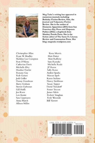 Exquisite Quartet Anthology for 2011. Thirteen stories from Dec. 2010 through Dec. 2011 published in Used Furniture Review. A quartet of writers each month write a collaborative story. Edited and co-authored by Meg Tuite. Writers include: Roxane Gay, Josh Goller, Christopher Allen, Ryan W. Bradley, Ron D'Alena, Catherine Davis, Robert Vaughan, Michelle Elvy, Heather Fowler, Rob Geisen, Danny Goodman, Barry Graham, Steven Gulvezan, Gill Hoffs, Jen Knox, Len Kuntz, Sara Lippmann, Anna March, Allison Miller, Kona Morris, Matt Potter, Matt Rafferty, Sam Rasnake, Michelle Reale, Joani Reese, Sally Reno, Amber Sparks, Marcus Speh, Karen Stefano, Nancy Stohlman, Susan Tepper, David Tomaloff, Foster Trecost, Jim Valvis, Eryk Wenziak and Bill Yarrow.